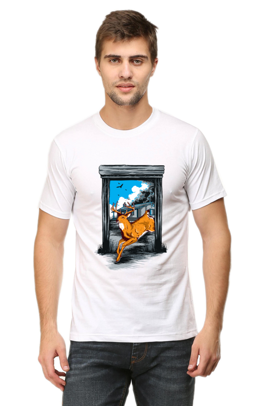 Jumping Deer Regular Cotton Round Neck T-shirt